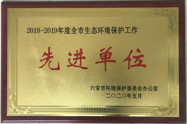 金寨海創(chuàng)榮獲“六安市生態(tài)環(huán)境保護工作先進單位”榮譽稱號