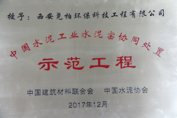 堯柏環(huán)保公司榮獲2017年“中國水泥工業(yè)水泥窯協(xié)同處置示范工程”稱號