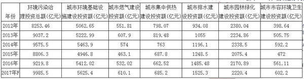 ? ? 近幾年,國內城市建設步伐加快,各類投資金額尾部增長,根據(jù)國家統(tǒng)計局數(shù)據(jù)顯示:2012年國內環(huán)境污染治理投資總額8253.46億元,到2017年預計約9985.5億元;2012年國內城市環(huán)境基礎設施建設投資額5062.65億元,到2017年約5625.4億元;2012年國內城市燃氣建設投資額551.81億元,預計2017年達610.1億元;2012年城市集中供熱建設投資額798.07億元,2017年預計約685.2; 2012年城市排水建設投資額934.08億元,2017年約1525.3億元;2012年國內城市園林綠化建設投資額2380.04億元,2017年約2220.4億元;2012年國內城市市容環(huán)境衛(wèi)生建設投資額398.64億元,預計2017年達602.2億元。