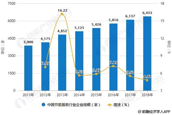 2011-2018年中國節(jié)能服務(wù)行業(yè)企業(yè)規(guī)模統(tǒng)計及增長情況預(yù)測