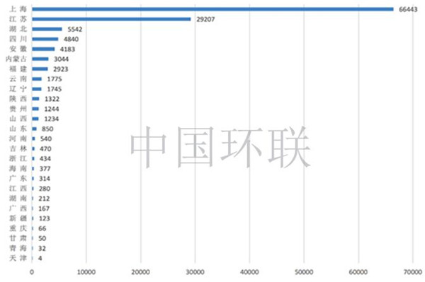 ? ? 根據(jù)2018年中國統(tǒng)計年鑒,2017年各省市工業(yè)污染治理投資中治理固體廢物完成情況如下。其中上海、江蘇、湖北排名全國前三。上海、江蘇、安徽、福建、湖北、四川和云南治理固體廢物完成情況占比超過國家均值2%。