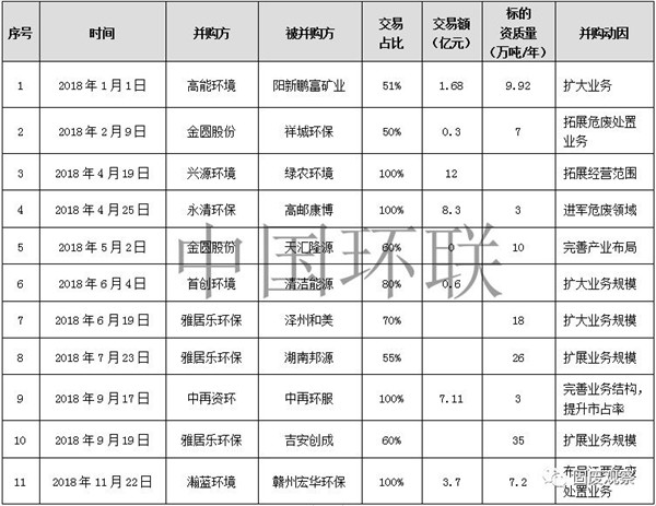 ? ? 危廢行業(yè)的高景氣度與高利潤率吸引到各路資本,資本的介入也加快行業(yè)的整合,據(jù)不完全統(tǒng)計,2018年危廢行業(yè)并購數(shù)量超過10起,偏向于行業(yè)擴張和產(chǎn)業(yè)整合,永清環(huán)保屬于個例。