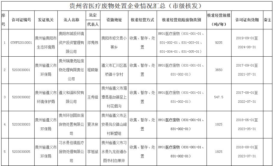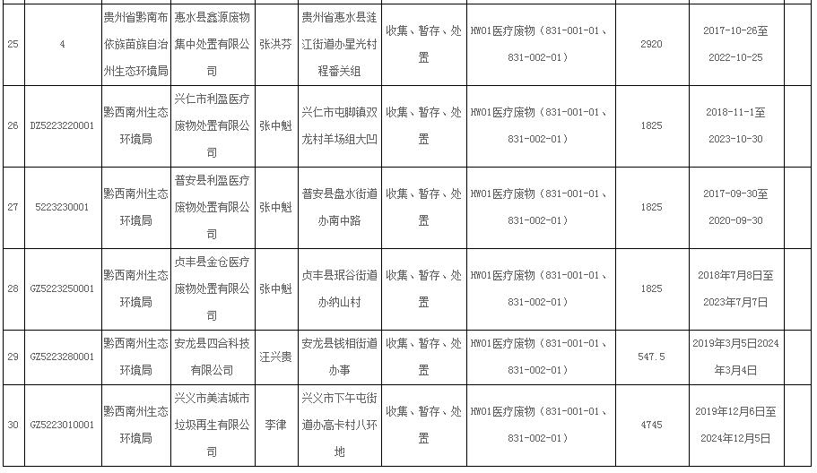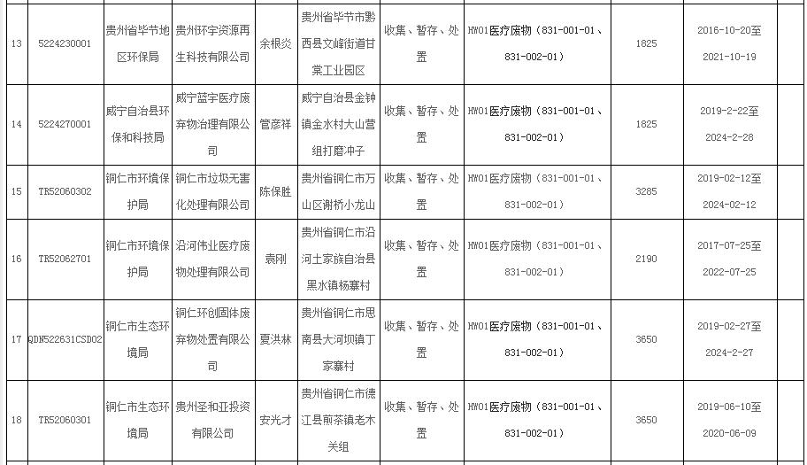 1、貴州省30家醫(yī)療廢物處置企業(yè)名單