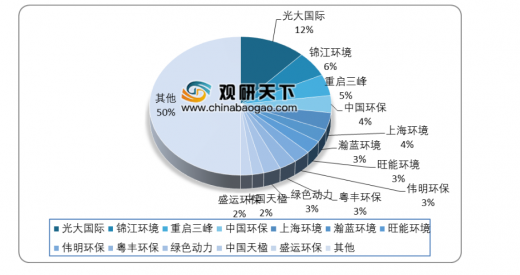 截至2018年6月垃圾焚燒發(fā)電行業(yè)市場份額統(tǒng)計