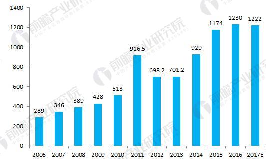 圖表5:2006-2017年中國(guó)危險(xiǎn)廢棄物處置量情況(單位:萬噸)