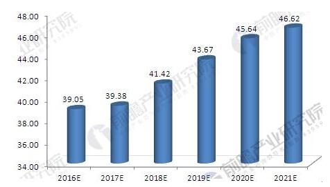 2016-2021年中國工業(yè)固體廢物產(chǎn)生量情況預測(單位:億噸)