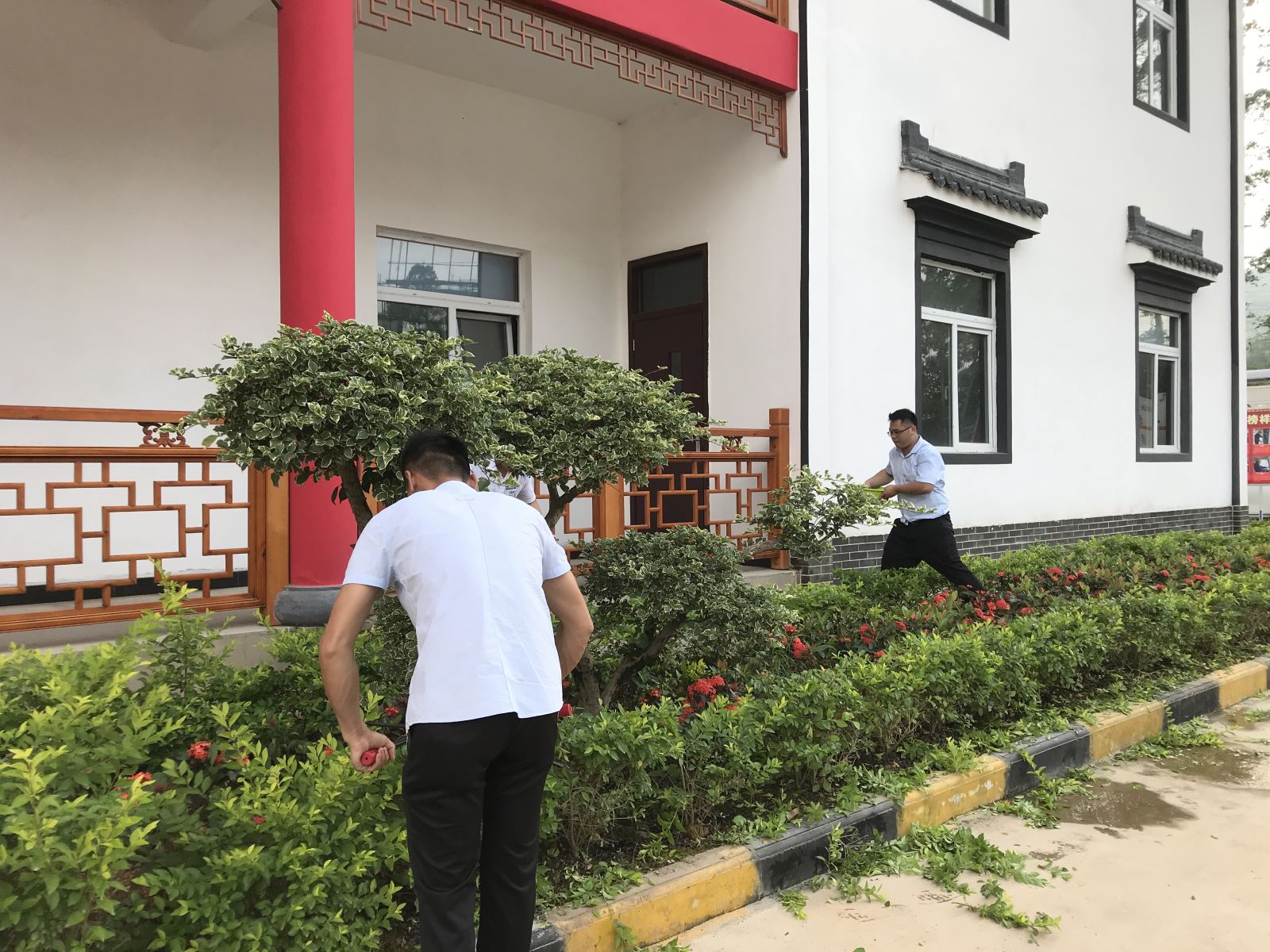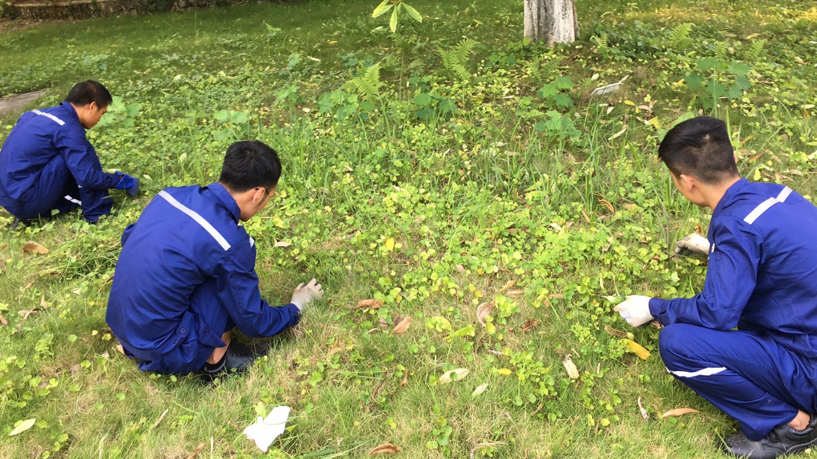 ? ? 另一組員工至公司辦公樓、生活區(qū)2#、3#樓集體宿舍宿舍進(jìn)行綠化帶修剪及除草、拔草,對(duì)綠化苗木進(jìn)行日常管養(yǎng),提高綠化景觀效果。